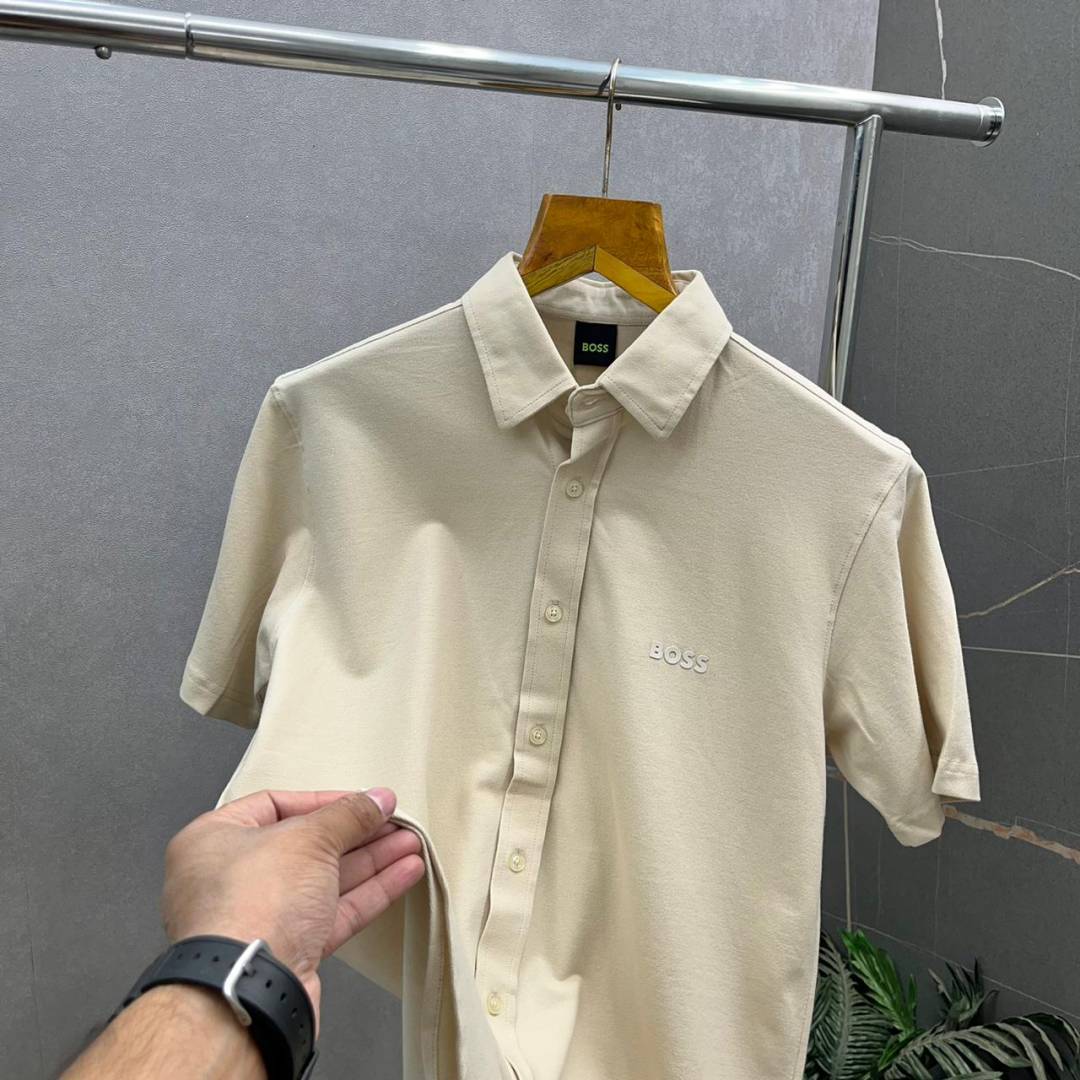 Bos_s Cream Premium Half Sleeves Shirt 496