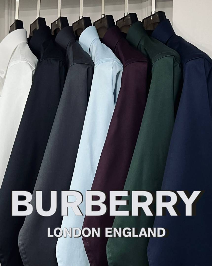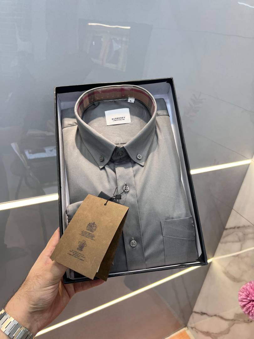Burberr y Grey Premium Imported Embroidered Logo Shirt with custom Branded Button Tagging And Brand Packing 3251