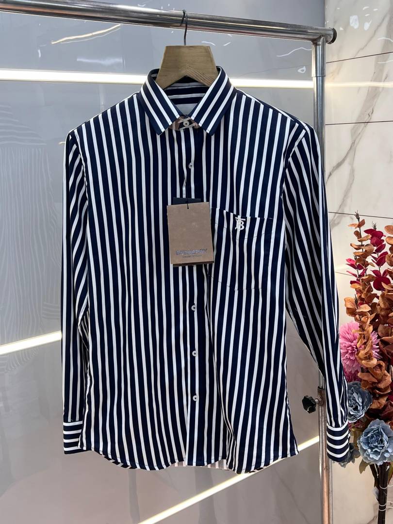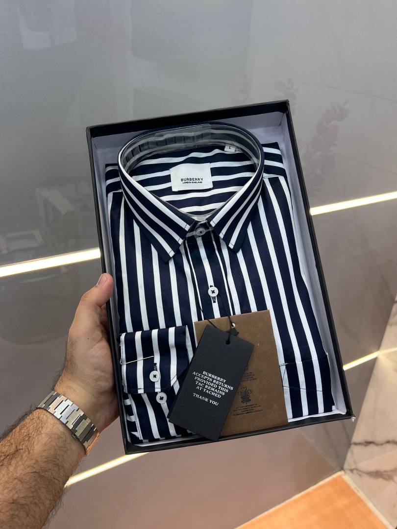 Burberr y Navy Premium Imported Cotton twill fabric Embroidered Logo Shirt with custom Branded Button Tagging And Brand Packing 3257