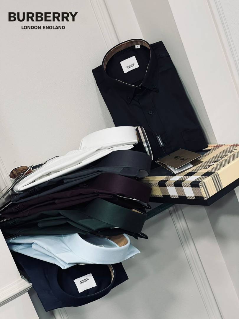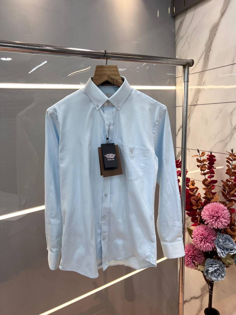 Burberr y Sky Blue Premium Imported Embroidered Logo Shirt with custom Branded Button Tagging And Brand Packing 3250