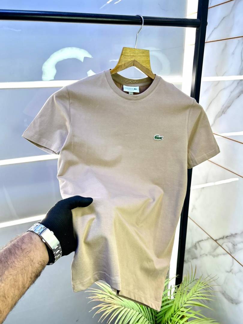 Lacost e Beige Embroidery Logo Round Neck Premium T-shirt F2995-BE