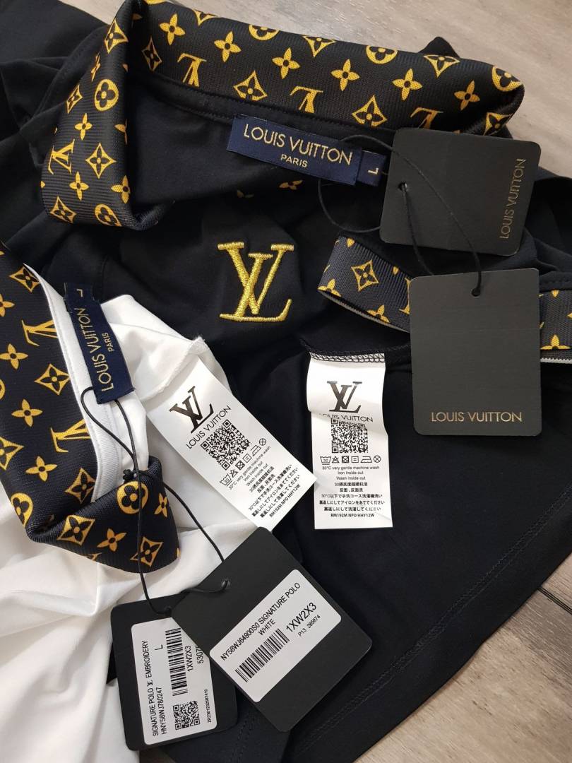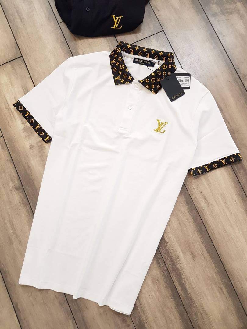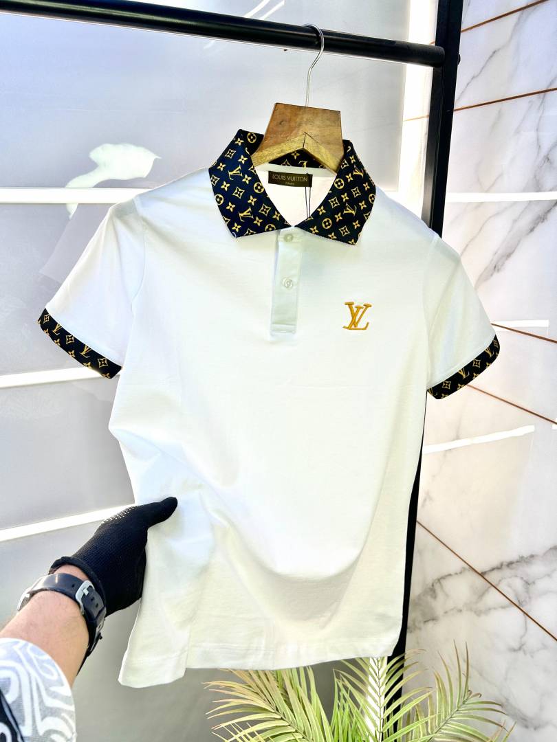 Loui s_Vuitton Imported Embroidery Logo Collar Neck White Polo T-shirt F1193-WH