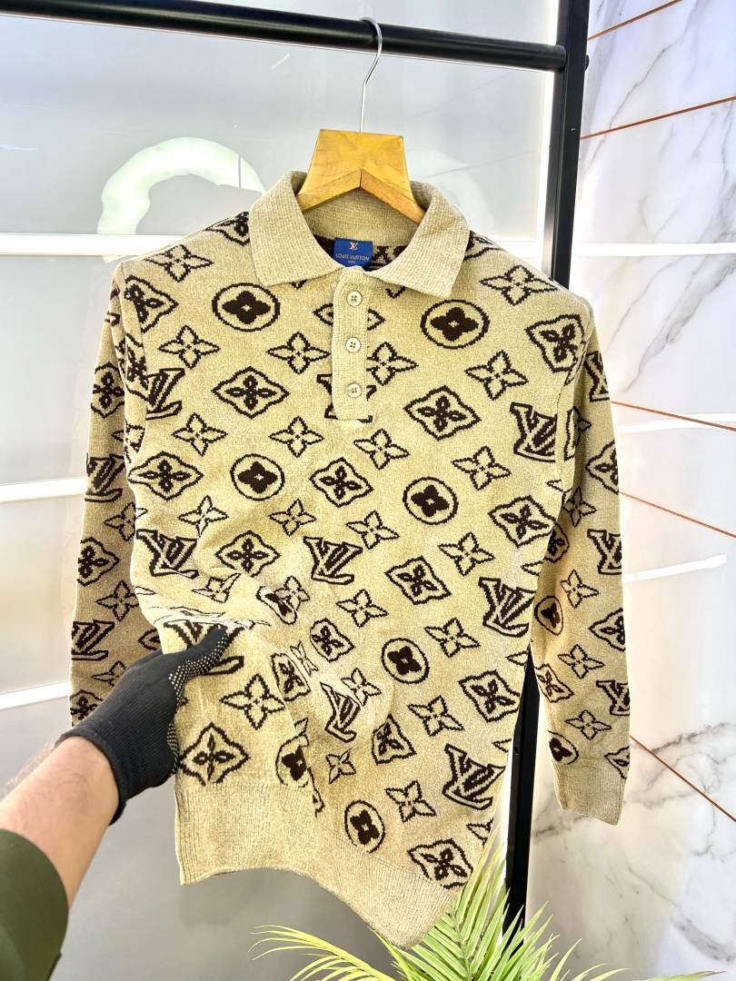 Louis_Vuitton Beige Monogram Imported Super Premium Sweatshirts F1299-BE