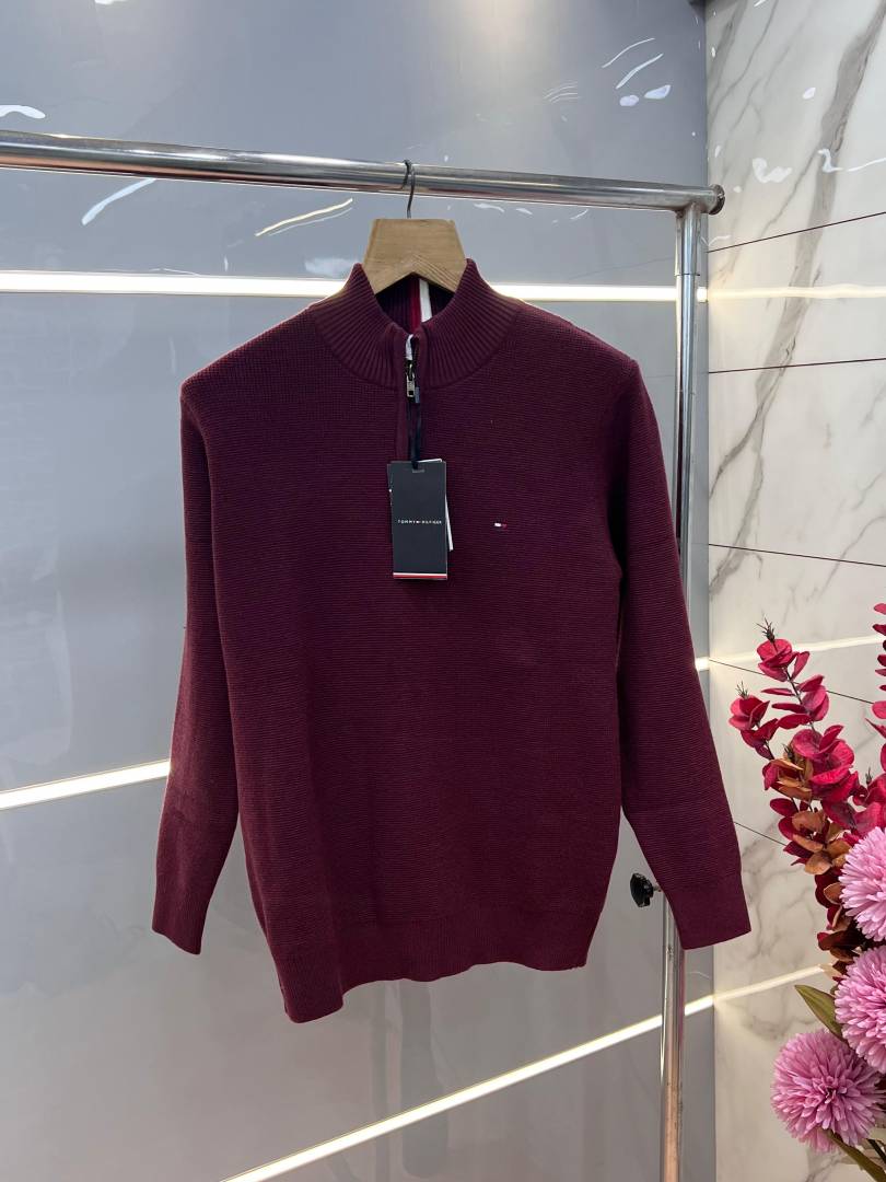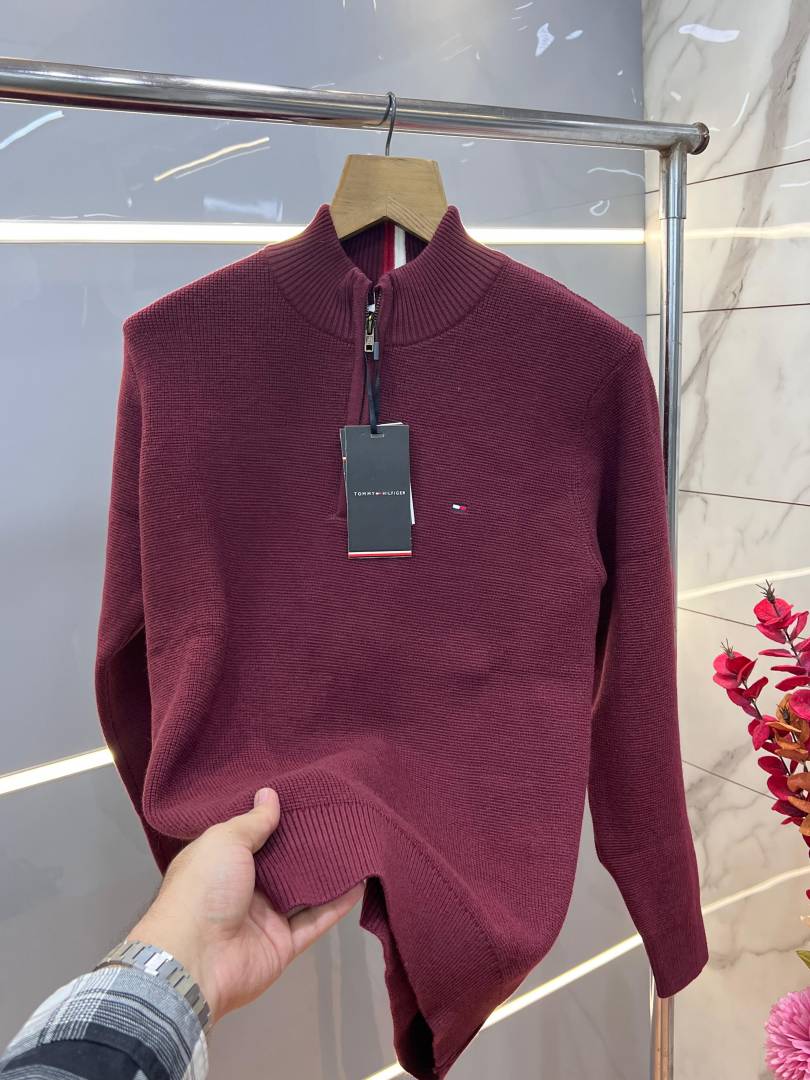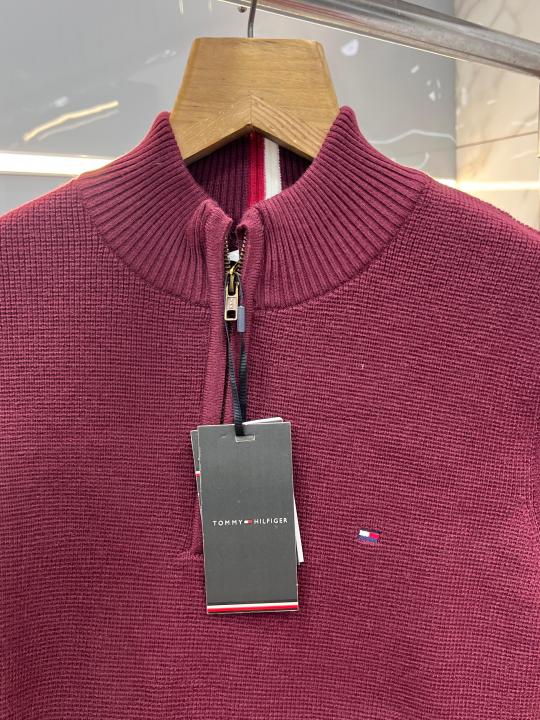 Tommy Hilfige r Maroon Premium Imported High Neck Knitted Pullover Half Zipper Style 3560